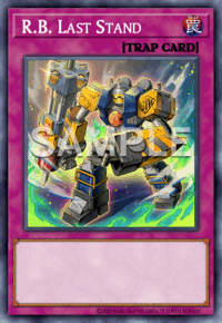 Special Summon 1 "R.B." monster from your Deck, Extra Deck, or GY, with a different name than the cards you control. For the rest of this turn after this card resolves, you cannot Special Summon from the Extra Deck, except Machine monsters with 1500 or less ATK. When your opponent activates a card or effect that targets an "R.B." monster(s) you control: You can banish this card from your GY; negate that effect. You can only use 1 "R.B. Last Stand" effect per turn, and only once that turn.