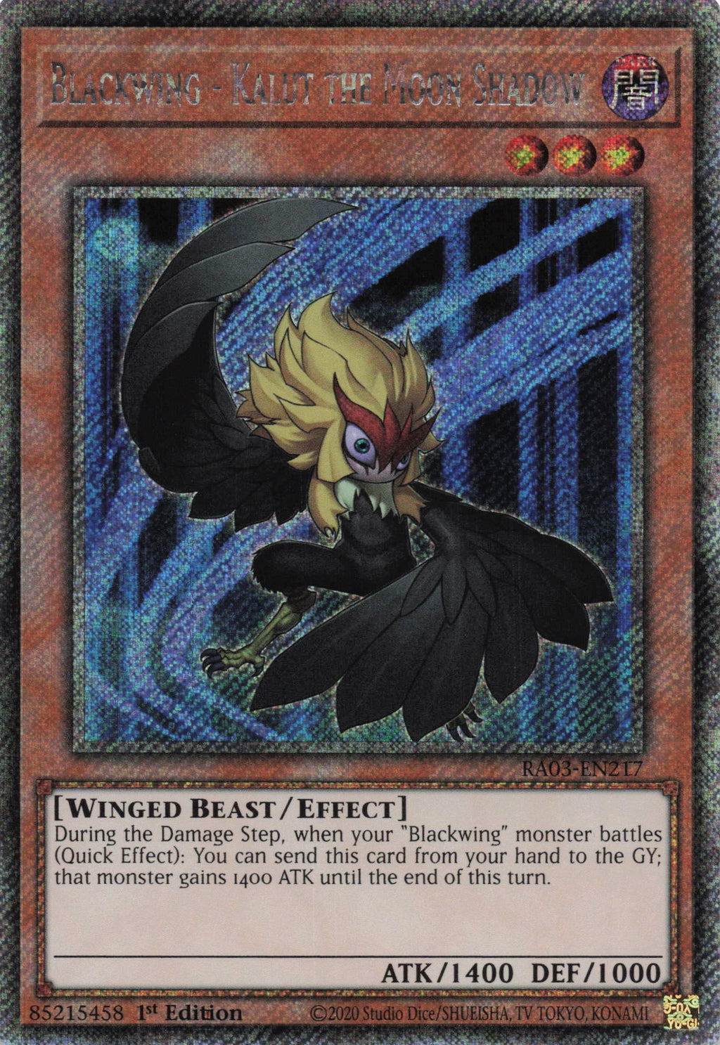 Yugioh RA03-EN217 - Blackwing Kalut the Moonshadow - Platinum Secret Rare - - Quarter Century Bonanza