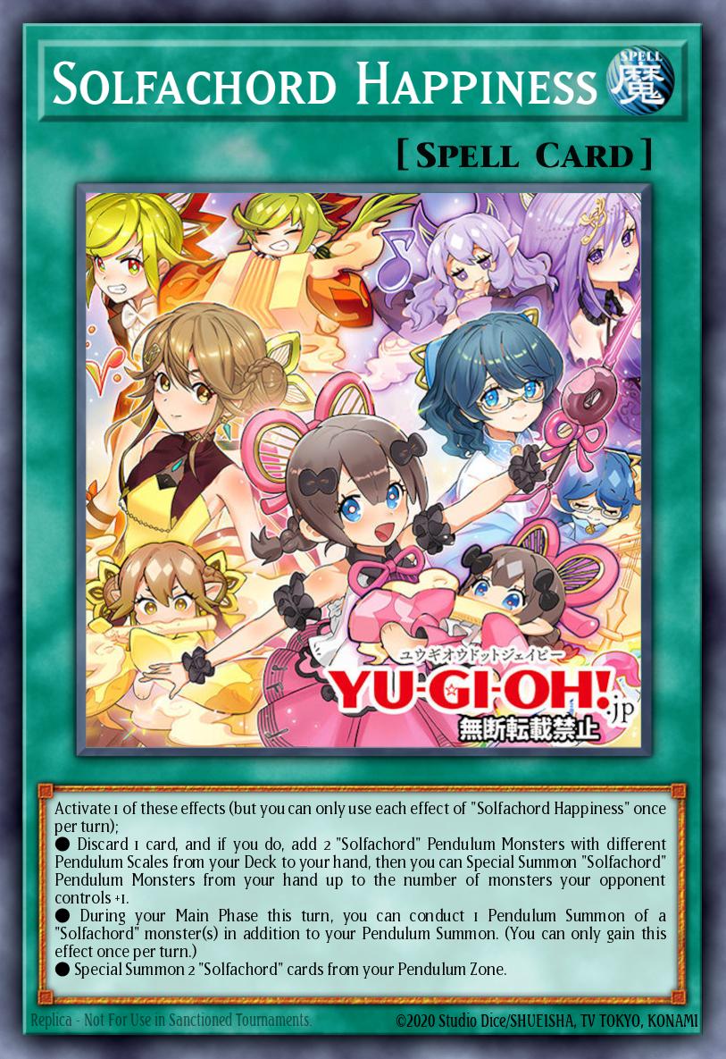 ● Discard 1 card, and if you do, add 2 "Solfachord" Pendulum Monsters with different Pendulum Scales from your Deck to your hand, then you can Special Summon "Solfachord" Pendulum Monsters from your hand up to the number of monsters your opponent controls +1.